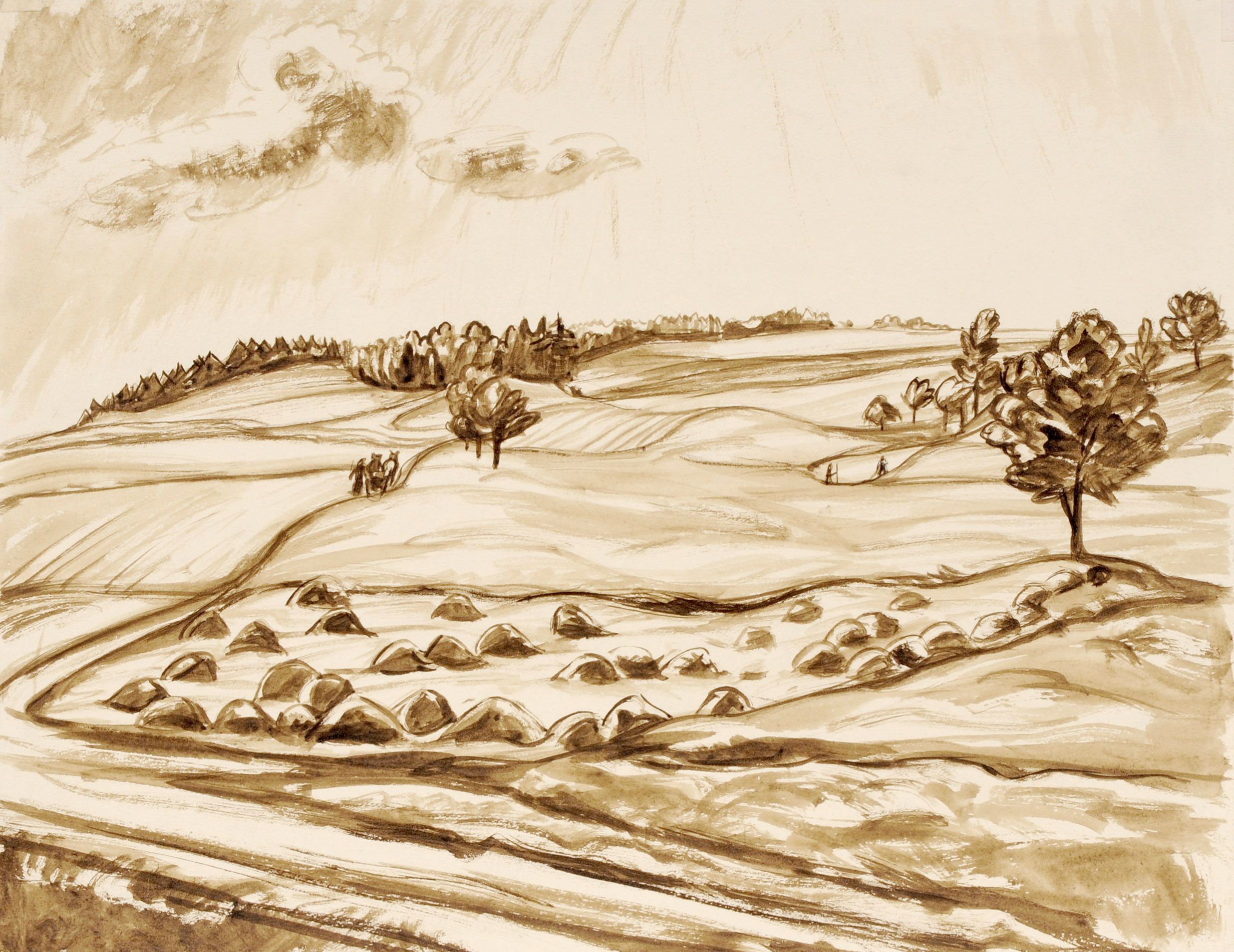 Aquarell auf chamoisfarbenem Papier. Unsigniert. Verso mit dem Nachlass-Stempel versehen. An den o. Ecken auf Untersatzkarton montiert.