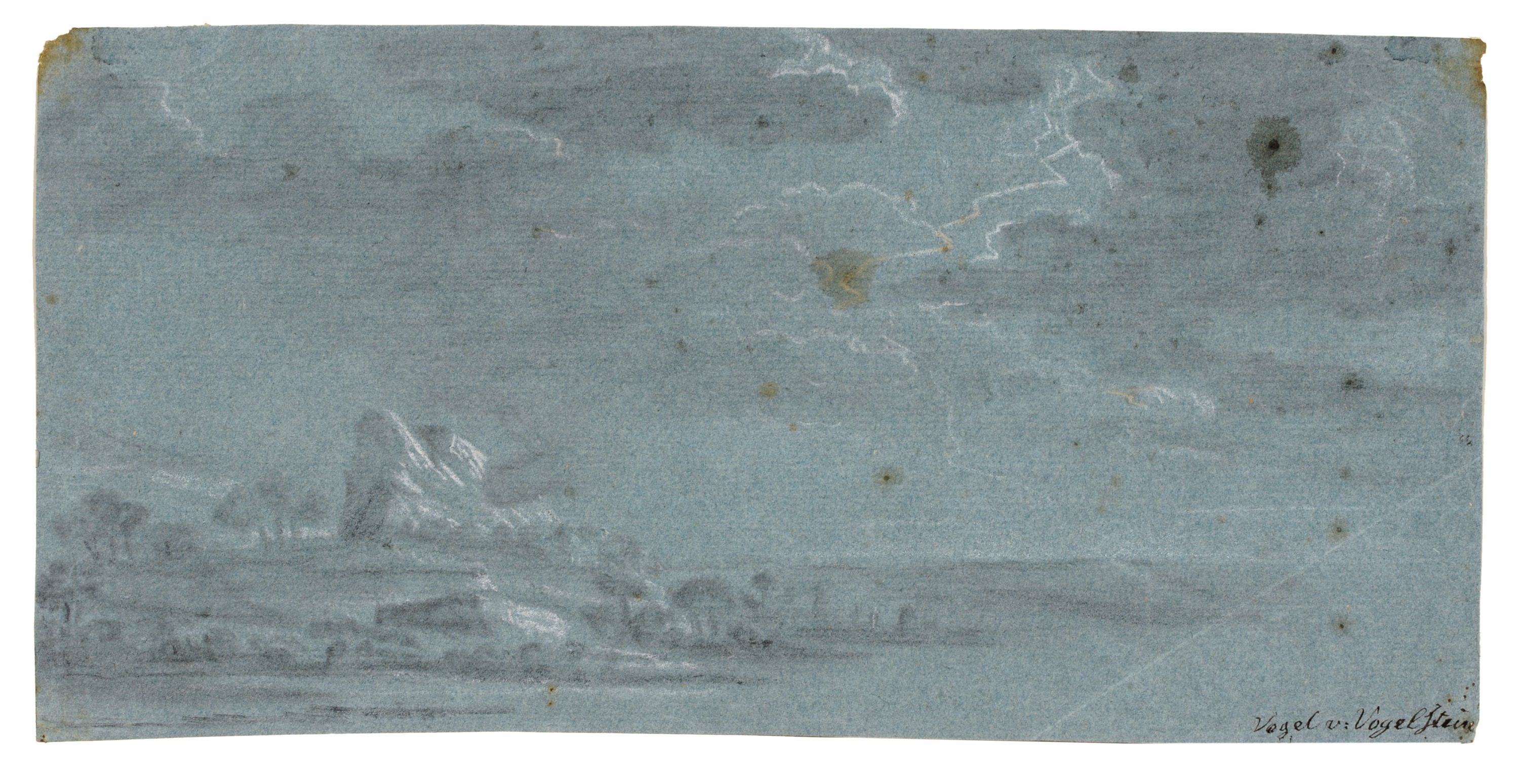 Kohlestiftzeichnung, sparsam weiß gehöht, auf blauem Papier. U.re. in Tusche von fremder Hand bezeichnet "Vogel v: Vogelstein". Verso in Blei nummeriert "222" o.li. Im Passepartout, darauf verso mit dem Inventarstempel von Johann Georg von Sachsen (1869 – 1938, Lugt 4485) versehen.