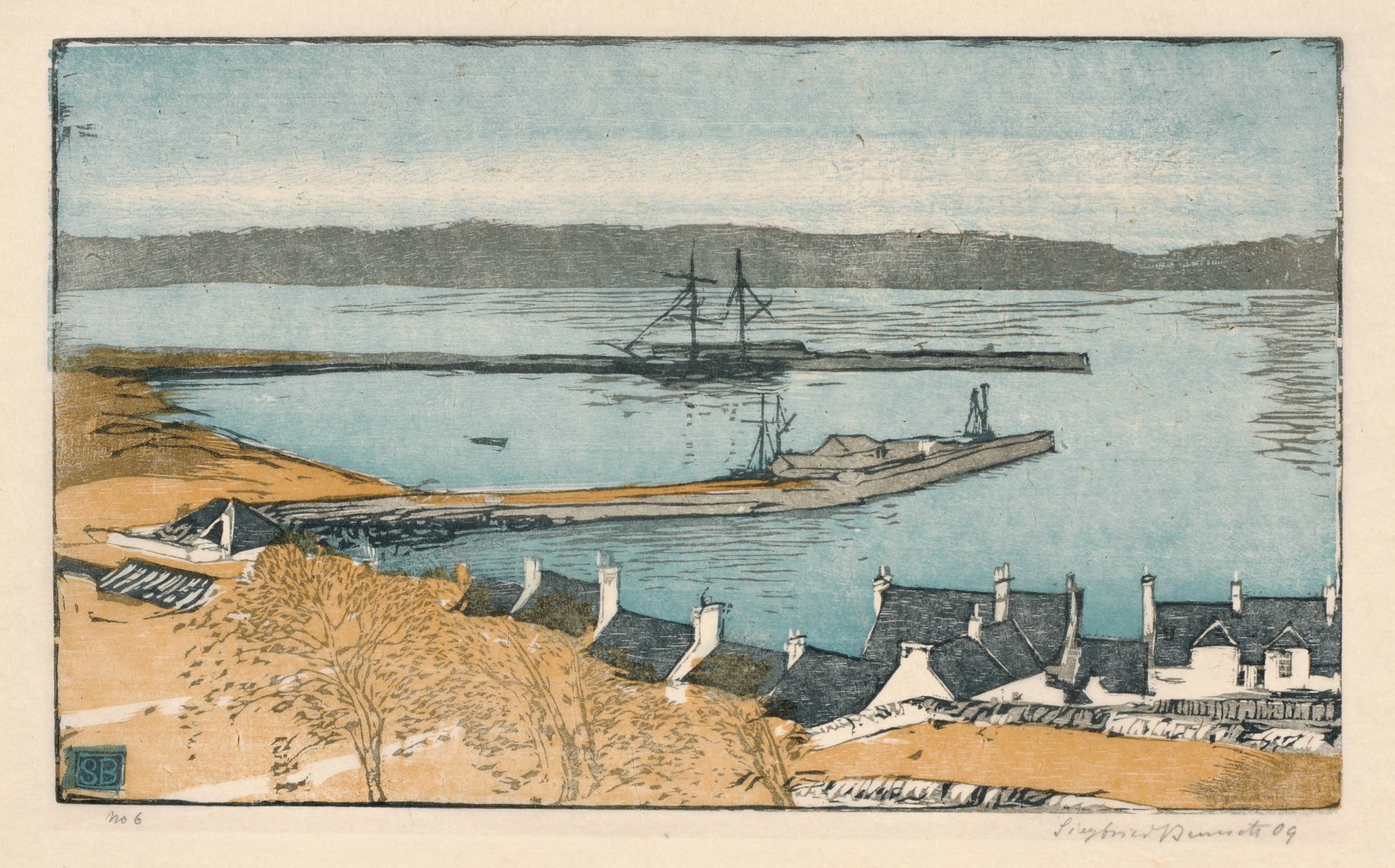 Farbholzschnitt auf feinem Japan. Im Stock u.li. monogrammiert "SB". In Blei u.re. signiert "Siegfried Berndt" und datiert sowie u.li. nummeriert "no 6". Am o. Blattrand auf Untersatzkarton klebemontiert.