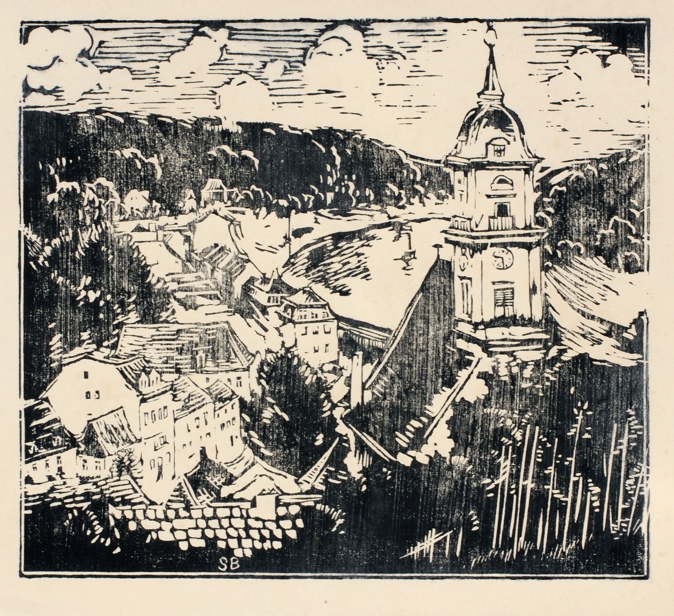 Holzschnitt auf wolkigem Bütten. Zustandsdruck. Im Stock monogrammiert "SB" u.Mi. Verso in Blei von fremder Hand bezeichnet.