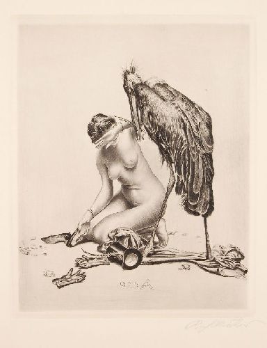 Die Zeichnung zu diesem exzellenten Blatt der Weib-Tier-Thematik entstand bereits zehn Jahre vor der Ausführung als Radierung.