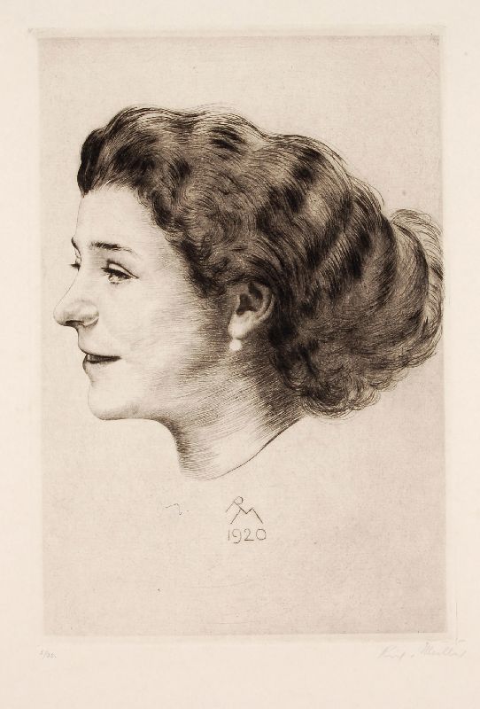 Radierung in Schwarzbraun mit Tonplatte. Ligiertes Monogramm und Datierung in der Platte. In Blei unterhalb der Darstellung signiert "Rich. Müller" und nummeriert 3/30. Blatt leicht lichtrandig, angeschmutz und geringfügig knickspurig. In der Darstellung links eine ca. 5 mm große Farbspur. WVZ Günther 105.