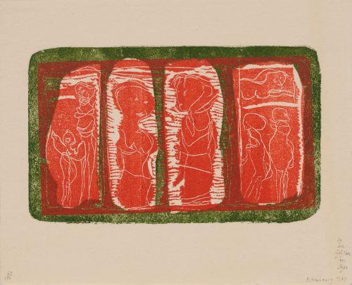 Farbholzschnitt auf kräftigem "Hosho"-Japan. In der Ecke u.re. in grauer Tusche betitelt, signiert "Altenbourg" sowie datiert und mit Blindprägung versehen. In der Ecke u.li. nummeriert "65/100".