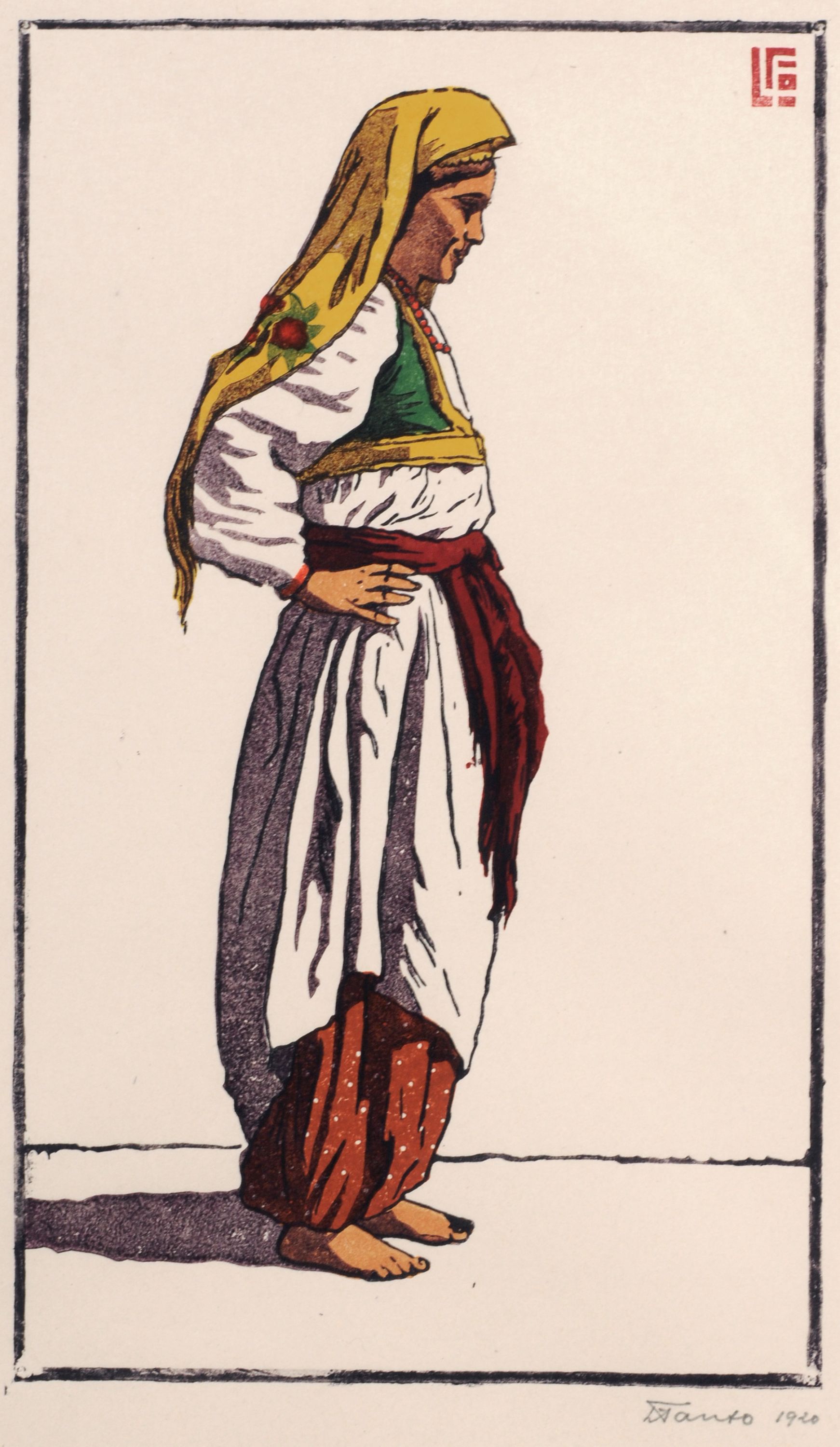 348 Leonhard Fanto, Balkan-Bäuerin in Tracht / Balkan-Bauer in Tracht. 1920.