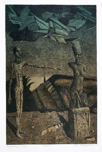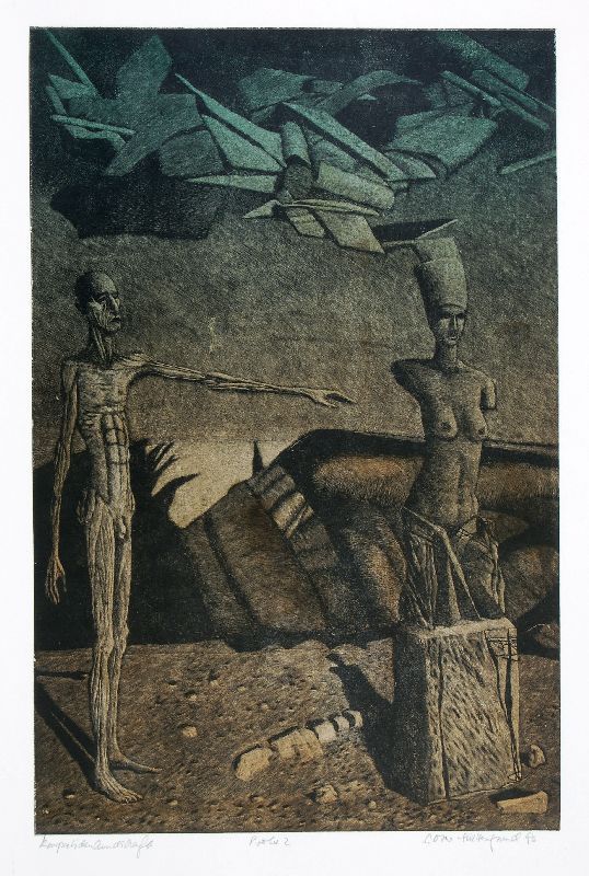 Holzstich (farbig). In Blei unter dem Stock signiert "S. Otto-Hüttengrund", datiert, betitelt und bezeichnet "Probe 2".