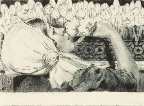 370   Käth Röhlar (?) "Mädchen am Tulpenbeet". 1910.