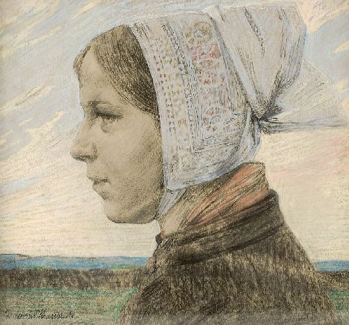 372 William Krause "Kopf eines Mädchens mit Trachtenschmuck". 1908.