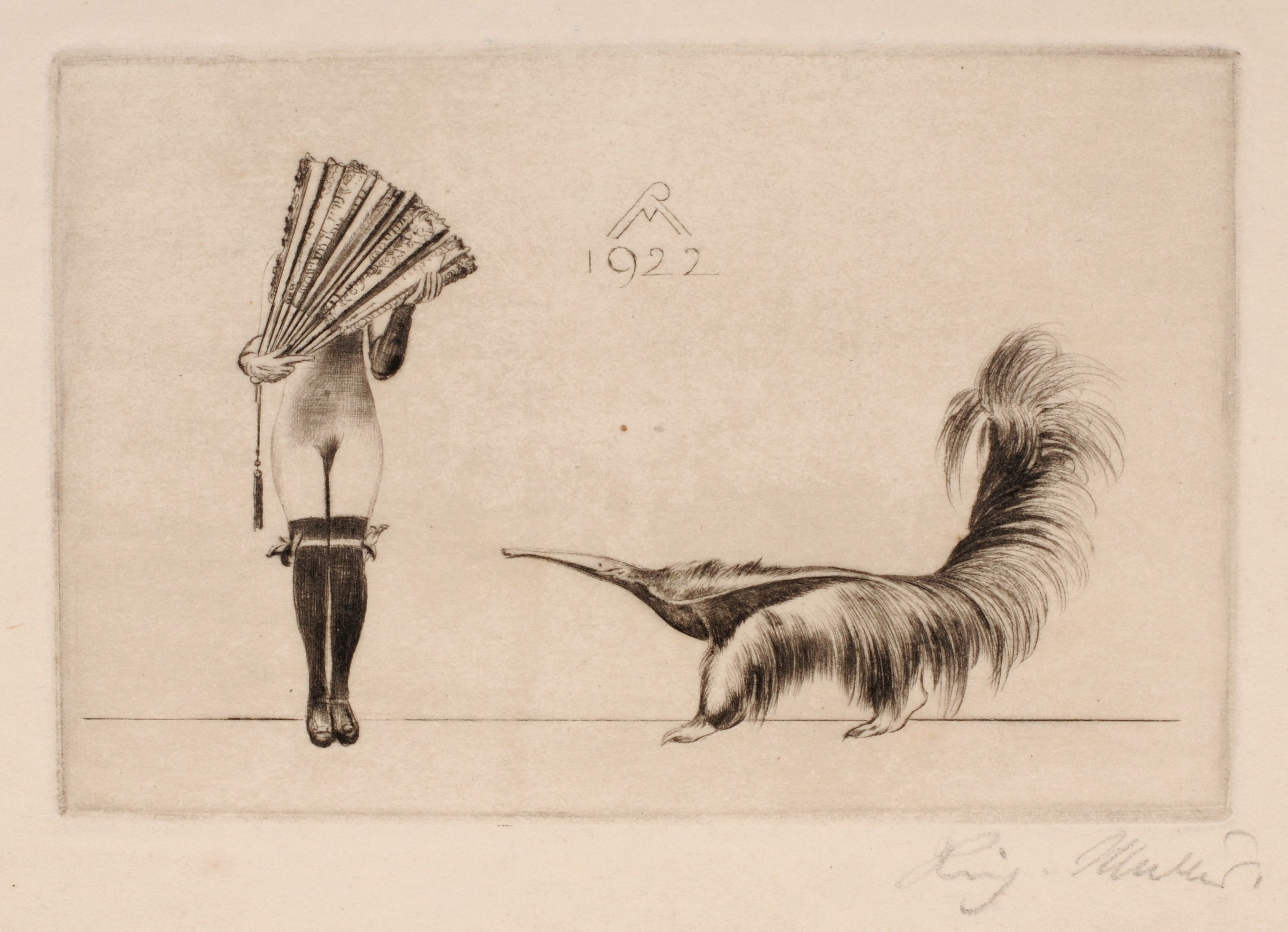 Radierungen in Schwarzbraun mit Plattenton auf feinem, wolkigen Papier. Unterhalb der Platte in Blei signiert "Rich. Müller" u.re. "Eine Anfrage" mittig in der Platte ligiert monogrammiert "RM" und datiert. An den o. Ecken im Passepartout montiert. "Italienisches Fuhrwerk" auf Untersatz im Passepartout montiert. Untersatz von fremder Hand in Blei bezeichnet.