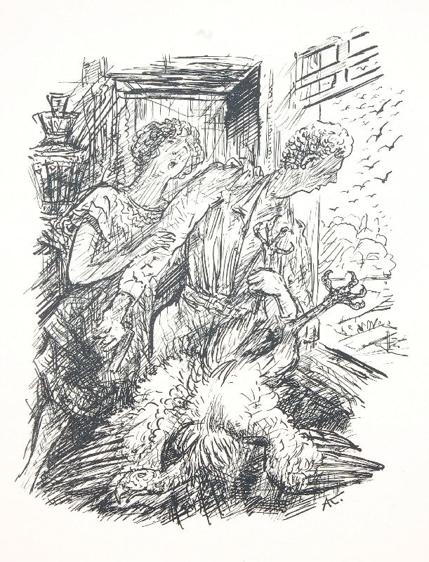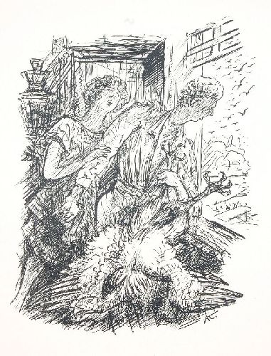 Federlithographie auf chamoisfarbenem Papier. Im Stein monogrammiert u.re. Minimale Knickspur am oberen Blattrand.Nicht im WVZ Hoberg.