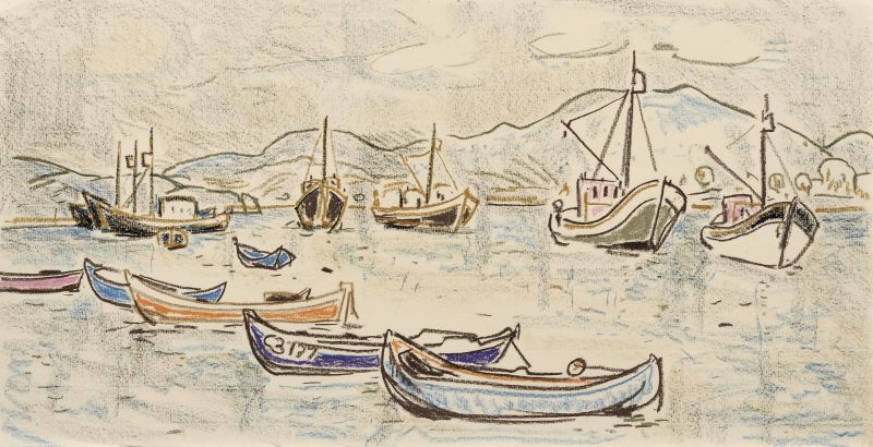 380 Erhard Hippold, Schiffe im Hafen. Wohl 1950er Jahre.