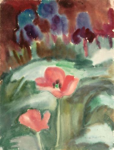 387 Gussy Hippold-Ahnert, Roter Mohn und Schwertlilien. 1948.