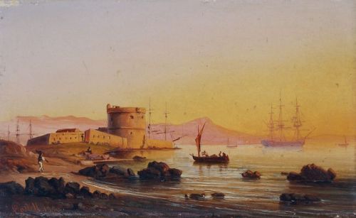 004 Johann Anton Castell "Hafen von Toulon by Sonnenuntergang" (Blick auf den Tour Royale). 1850.