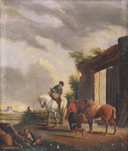 041 Unbekannter Maler "Reiterszene". 19. Jahrhundert.