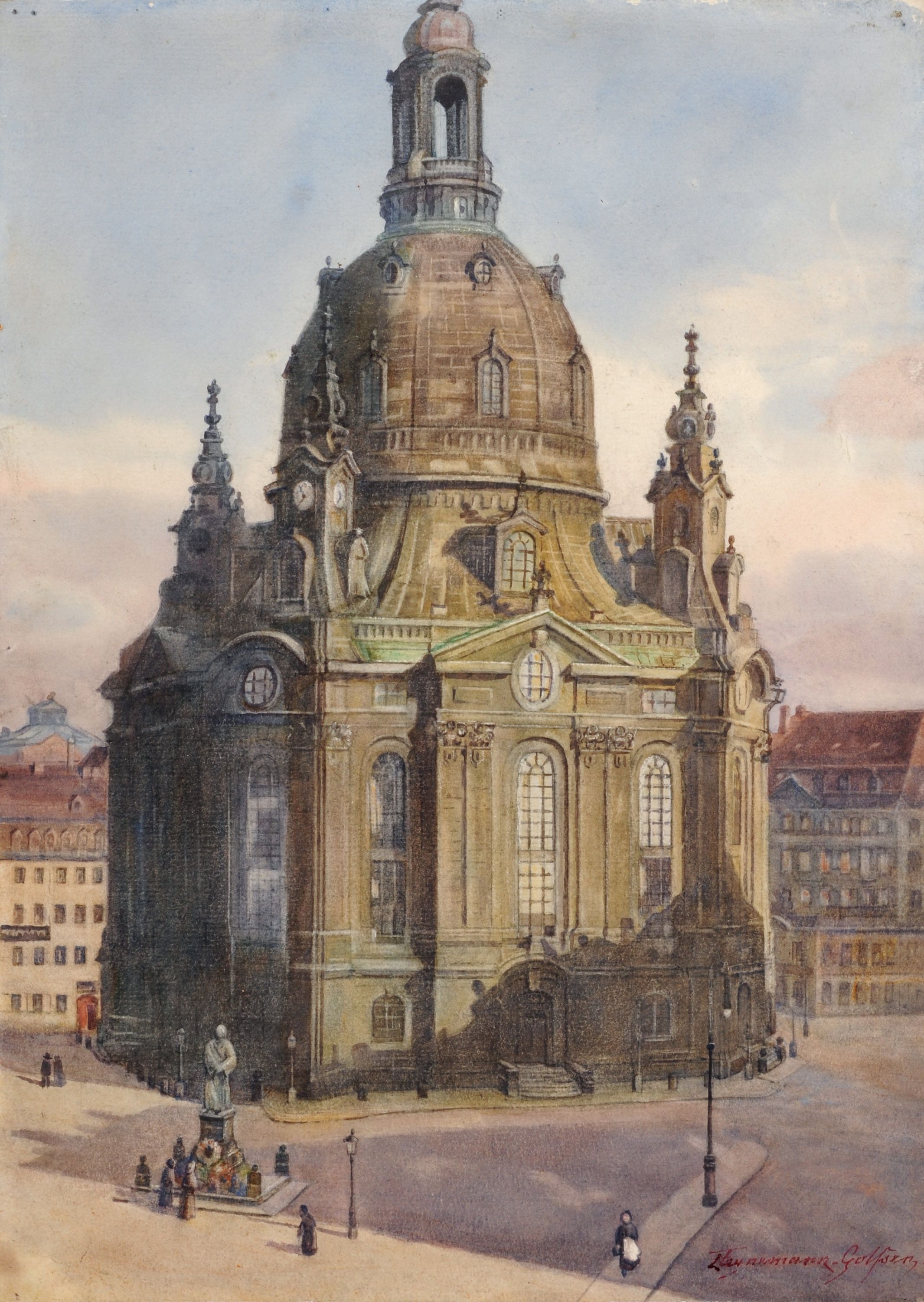 418 Unbekannter Maler, Dresden – Neumarkt und Frauenkirche. Wohl um 1940.