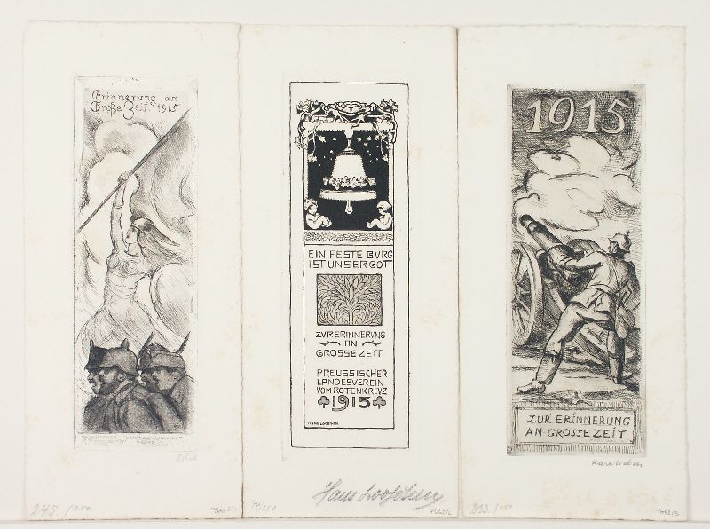423 Karl Walser, Hans Looschen und Emil Orlik 3 Blatt 'Erinnerung an eine Große Zeit'. 1915.