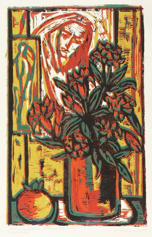 Farblinolschnitt. In Blei bezeichnet, (unleserlich) signiert und datiert u.Knickspuren oben und unten.