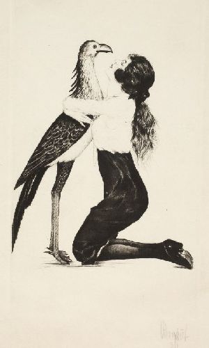 443   Unbekannter Künstler "Dame und Vogel". 1930.