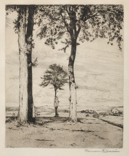 476 Hermann Kätelhön, Drei Bäume in weiter Landschaft. Um 1915.