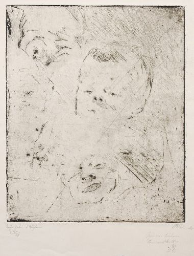 Radierung auf chamoisfarbenem Papier. In Blei betitelt u.li., datiert und signiert "Rehn" u.re. Persönliche Widmung des Künstlers in Blei u.re. Auf Untersatzpapier montiert. Blattränder minimal knickspurig. Oberer Blattrand mit minimalen Leimfleckchen.