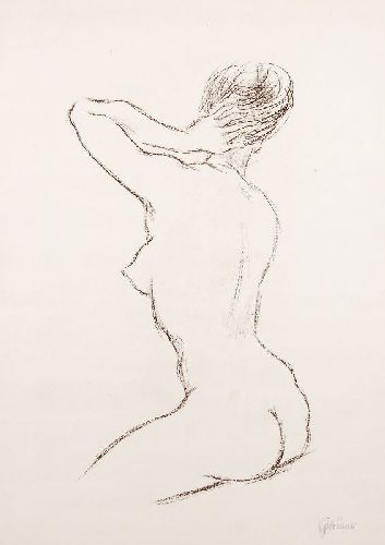 481 Unbekannter Künstler, Sitzender weiblicher Rückenakt. Ohne Jahr.