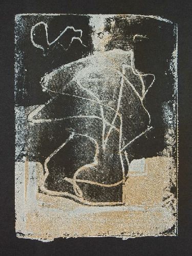Farblithographie und Siebdruck auf schwarzem Papier. In Blei u.li. undeutlich bezeichnet. Linke Bildhälfte stark knickspurig. Rechter Rand mit ca. 5 mm großem Riss.