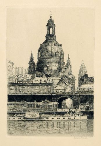 Radierungen auf Kupferdruckpapier. Jeweils unterhalb der Darstellung re. in Blei signiert "Hans Kirst". Ein Blatt (Konzert im Dresdener Zwinger) in Blei u.li. bezeichnet "Nr 5". Alle Blätter verso mit dem Künstlerstempel versehen.