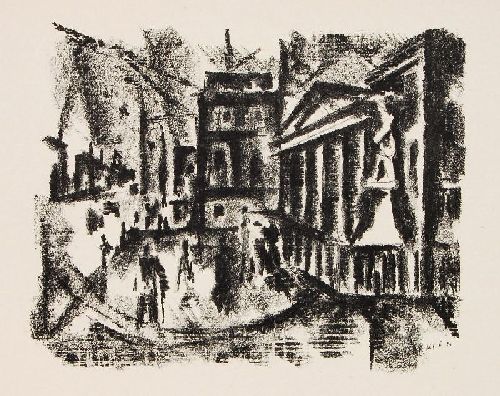 Drei Lithographien. Zwei Blätter im Stein signiert "Otto Möller" und "Klein" u.re. Verso bezeichnet von fremder Hand "Otto Möller", "Otto Nagel" und "C. Klein 1920-25". Alle Arbeiten aus einer nicht ausgelieferten Graphikmappe mit Berliner Ansichten. Alle Blätter leicht gegilbt. Teilweise stockfleckig.