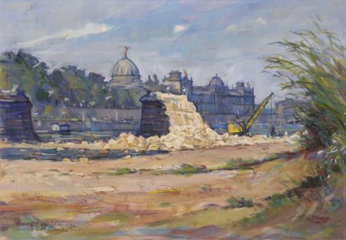 493 Hermann Kohlmann "Abbruch der ehemaligen Carolabrücke in Dresden". 1964.