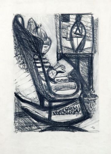515 Joachim Heuer, Mädchen im Schaukelstuhl vor der Staffelei. Ohne Jahr.