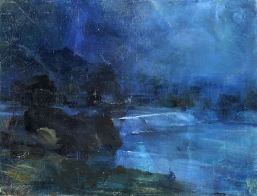 053 Arno Drescher, Nächtliche Flusslandschaft. Mitte 20. Jh.