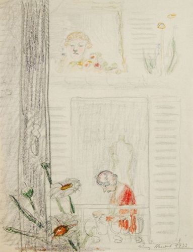 Die Blätter entstammen einem Skizzenbuch der Künstlerin und illustrieren das Pariser Straßenleben mit seinen Clochards, Booten auf der Seine und Cafészenen.