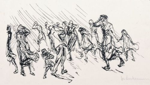 Holzschnitt - Zeichnung auf China. In Blei signiert u.re. "MLiebermann" und nummeriert u.li. "26/30". Aus der Mappe "Neue Holzschnitt-Zeichnungen von Max Liebermann", geschnitten von Reinhold Hoberg. An den beiden oberen Blattecken im Passepartout montiert.