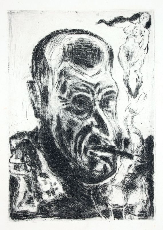 563   Unbekannter Künstler "Männlicher Kopf mit Zigarre". Ohne Jahr.