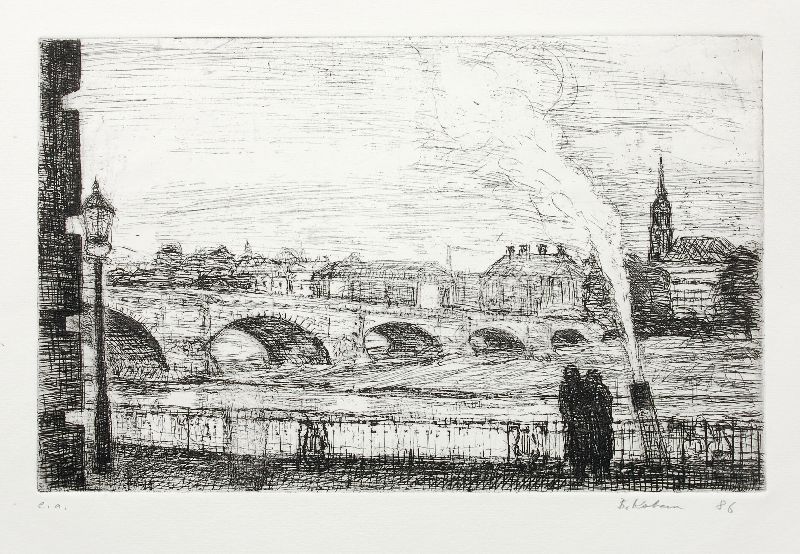 10 Arbeiten (Radierungen, Lithographien, Aquatinta, ...) von verschiedenen Künstlern wie Bodzin, Damme, Koban, etc. Unterschiedliche Qualitäten.
