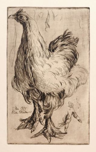 Radierung in Braun mit Plattenton auf kräftigem, chamoisfarbenen Papier. In der Platte am li. Rand signiert "Rich. Müller" sowie ausführlich datiert "2. Mai 1901".