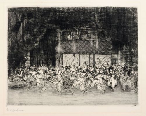 Radierungen auf "Van Gelder Zonen"-Bütten. Jeweils in der Platte betitelt „Ballets Russes“ und nummeriert (20, 25, 31, 33). Alle Arbeiten unterhalb der Darstellung in Blei li. signiert "E Oppler". Aus der Buchausgabe mit 40 Radierungen. Erschienen bei Horodisch & Marx, Berlin 1926. Gedruckt von Georg Schneider, Berlin.