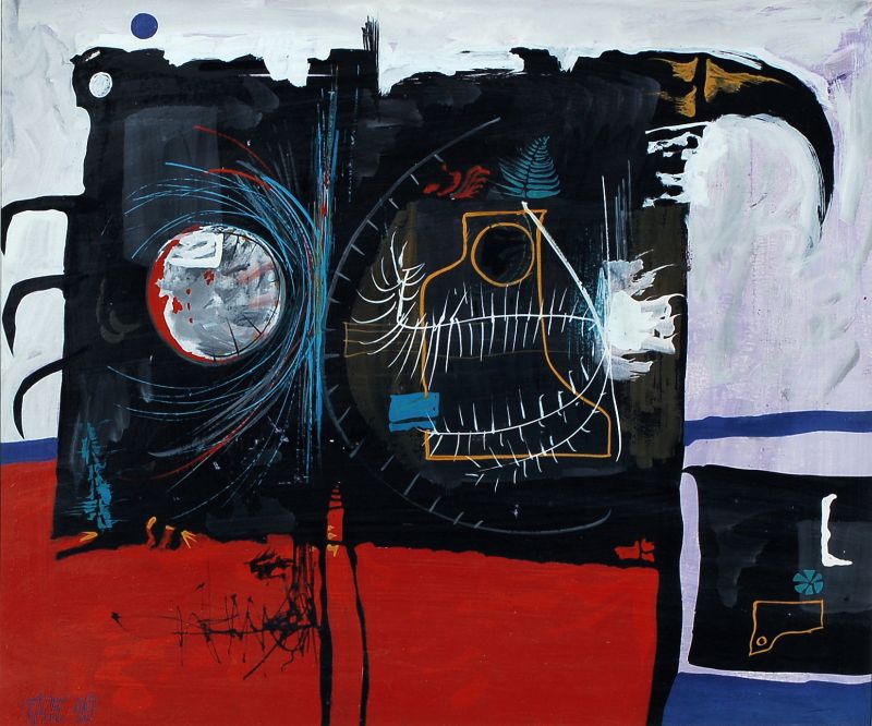 Mischtechnik. U.li. signiert "Racle" und datiert, verso mit einer Widmung des Künstler versehen. Hinter Glas gerahmt.