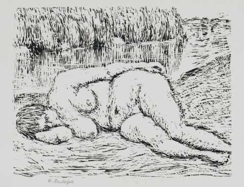 633 Wilhelm Rudolph, Liegender weiblicher Akt am Fluß. 1960er Jahre.
