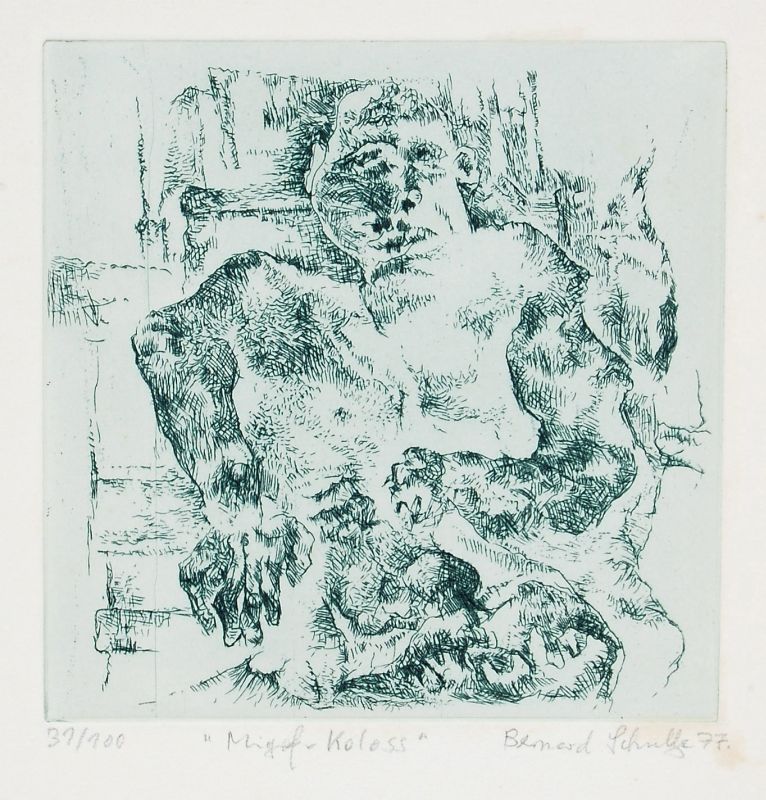 Farbradierung auf festem Papier. Außerhalb der Platte in Blei signiert "Bernhard Schultze" u.re, bezeichnet u.Mi. und nummeriert "31/100".