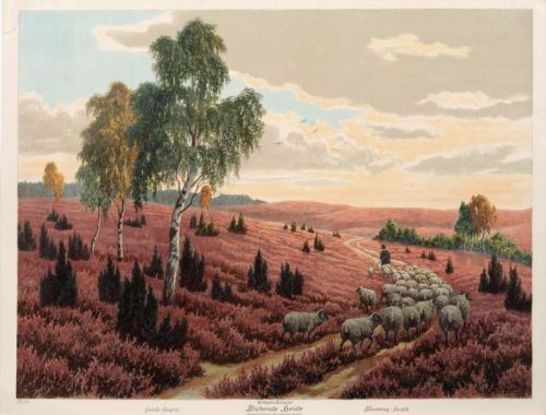659 Wilhelm Schacht "Blühende Heide" / "Sonnenaufgang in der Heide". Anfang 20. Jh.