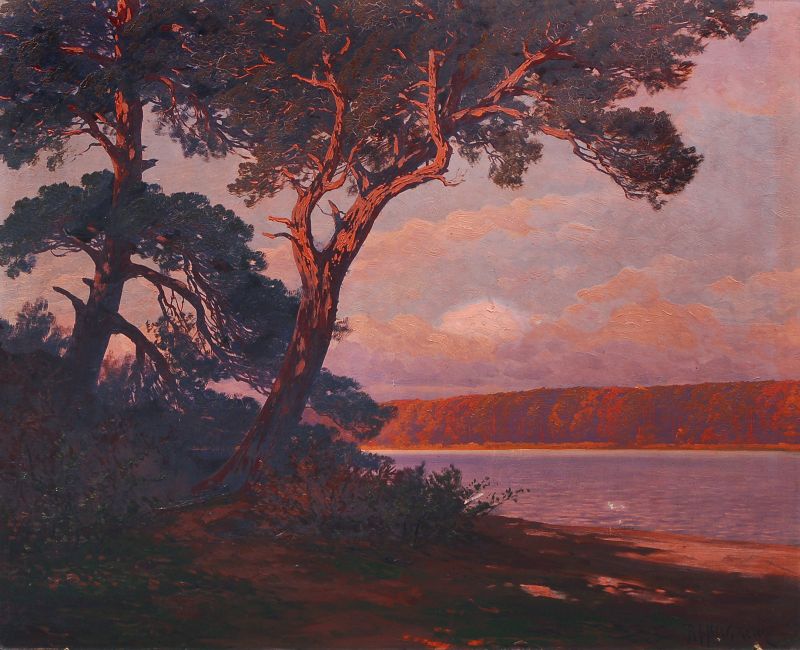 067 Rudolf Hellgrewe, Märkischer See im Abendrot. Ohne Jahr.