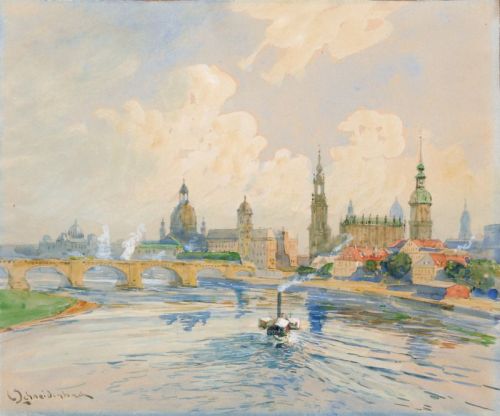 676 Camillo Schneidenbach, Dresden - Blick auf die Altstadt von der Marienbrücke aus. Frühes 20. Jh.