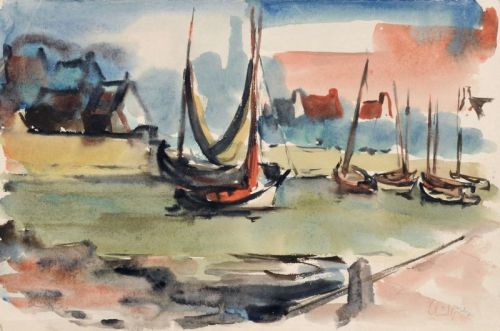 677 Armin Schulze "Fischerboote im Hafen". 1950er Jahre.