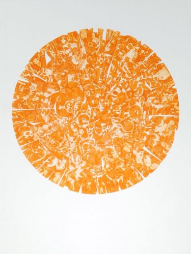 Farbaquatintaradierung in Orange auf chamoisfarbenem Papier. Außerhalb der Platte in Blei signiert "Volkert" und datiert u.re., betitelt u.Mi. und nummeriert "2/15" u.li. Im Passepartout.