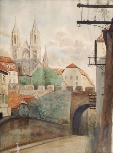 684 Monogrammist F.W., Meißen - Blick auf den Dom. 20. Jh.