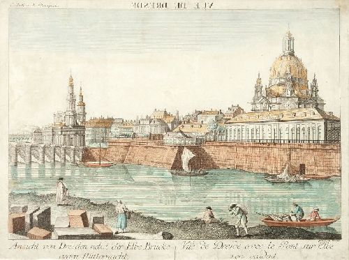 070   Johann Anton Riedel Johann Anton (?) Riedel "Vue de Dresde – Ansicht von Dresden nebst der Elbe Brücke gegen Mitternacht". Um 1780.