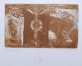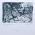Farbaquatintaradierungen und ein Offsetdruck. Mappe mit sechs Arbeiten zu dem Ballett "Brennender Friede", Choreographie von H. Wandtke, Musik von U. Zimmermann. Jeweils in Blei u.re. in Griechisch signiert und datiert, u.li. unterschiedlich bezeichnet "Zu R. Hagelstange", "Zu N. Sachs", "Zu M.L. Kaschnitz", "Zu W. Borchert", "Zu E.L. Schüler" und "Zu G. Lovpa". U.Mi. nummeriert "II.V/X" sowie mit einem Trockenstempel versehen. In der originalen Einlegemappe.