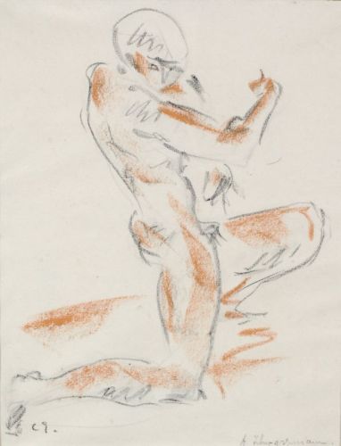 711 Unbekannter Künstler, Männlicher Akt, kniend. 1929.