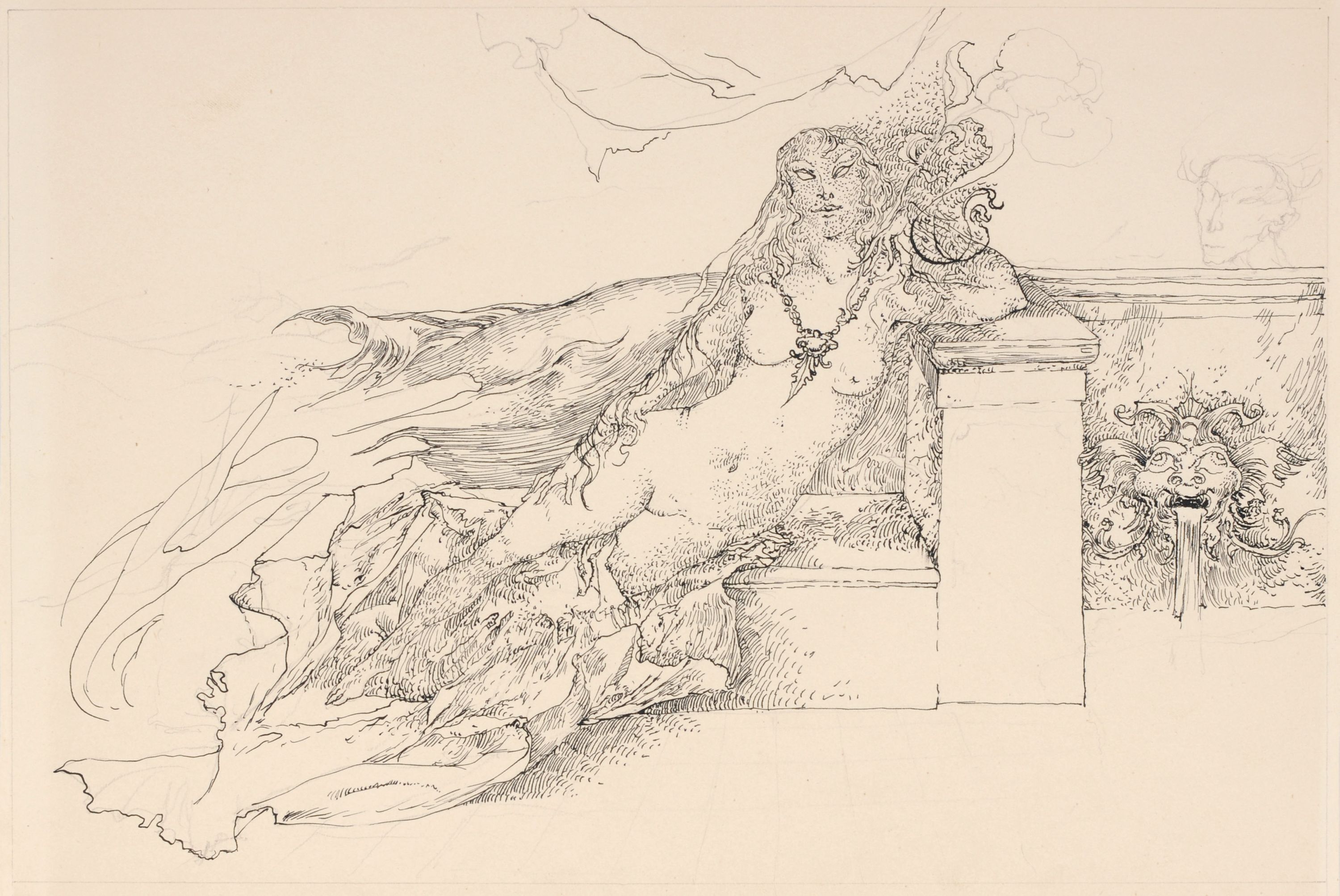 Federzeichnung in Tusche über Blei auf chamoisfarbenem Papier. Unsigniert.