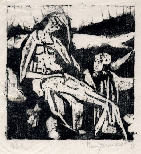 Holzschnitt auf hauchdünnem Japan. In Blei unleserlich signiert "Hans..." sowie datiert re. und nummeriert "N.8" li.
